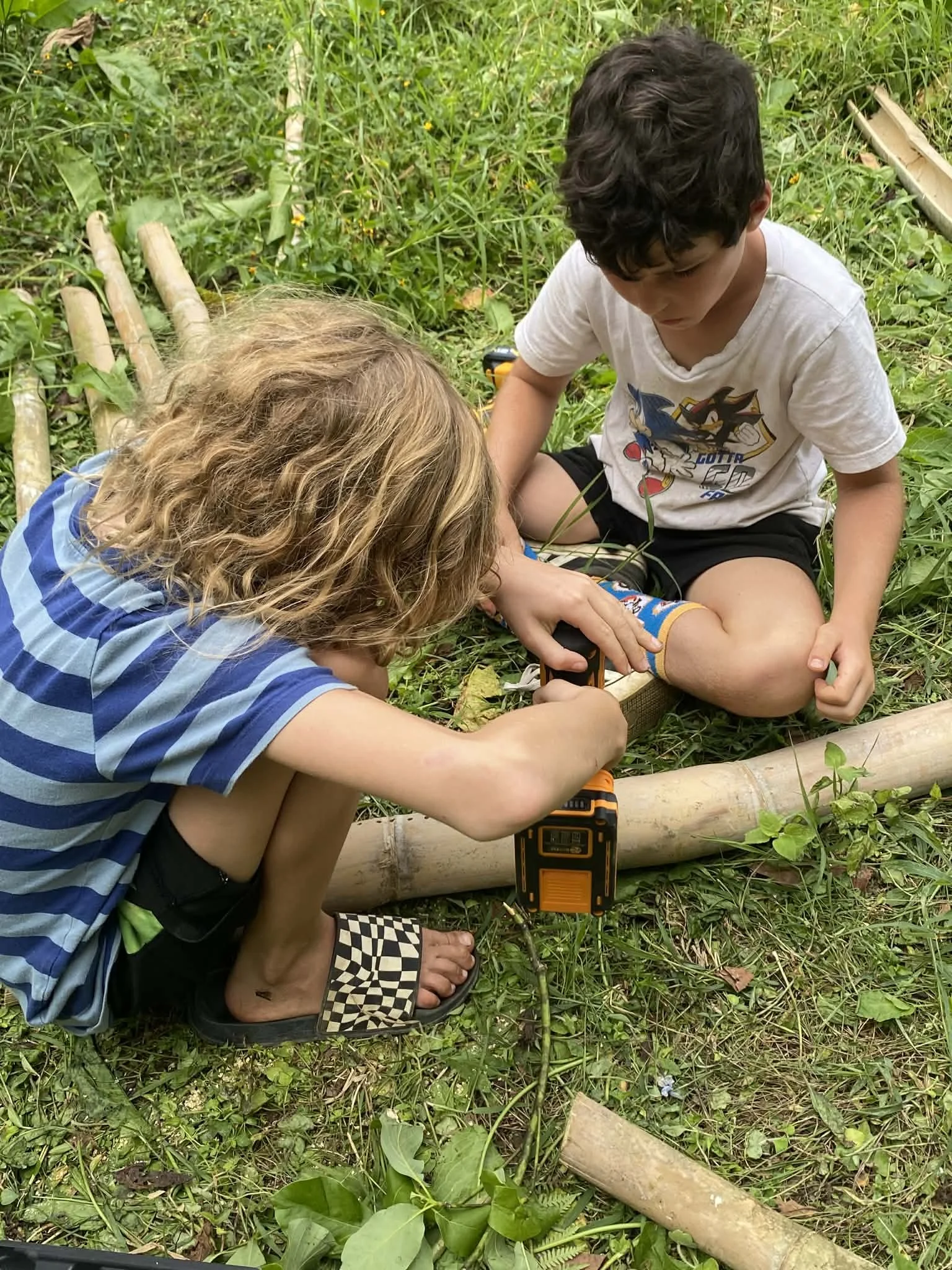 They quickly established roles within themselves. Hands once crossing boundaries now put to work lifting heavy pieces of bamboo.