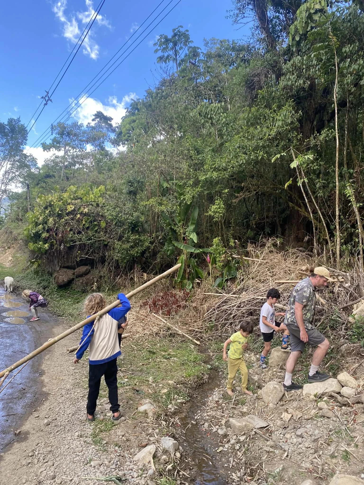 They ran out the gate to a bamboo pile, a 5 minute walk down a dirt road in the jungle.